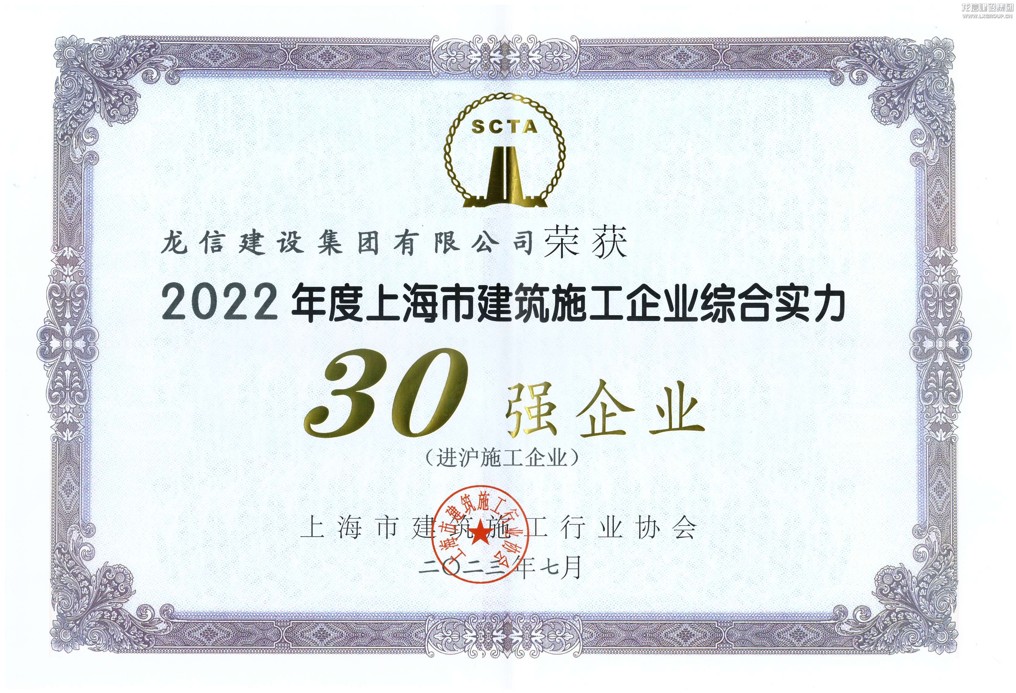 2022年度上海市建筑施工企業(yè)綜合實(shí)力30強(qiáng)企業(yè)