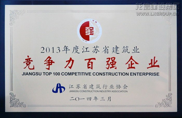 2013年度江蘇省建筑業(yè)競爭百強(qiáng)