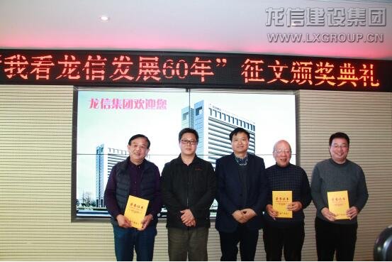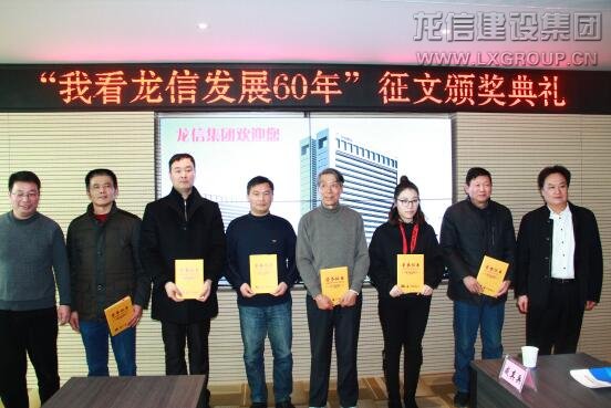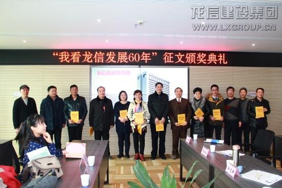 龍信集團(tuán)董事長(zhǎng)陳祖新發(fā)表了熱情洋溢的講話(huà),陳董首先向關(guān)心龍信發(fā)展的各界人士表示感謝,對(duì)本次征文比賽獲獎(jiǎng)人員表示祝賀。向大家介紹了集團(tuán)發(fā)展歷程,龍信成立于1958年,是海門(mén)最早成立的建筑施工企業(yè),公司一直堅(jiān)持以建筑為主業(yè),常年奮戰(zhàn)在全國(guó)各地,近年來(lái)參與家鄉(xiāng)建設(shè),為家鄉(xiāng)人民提供高品質(zhì)全裝修住宅和一流的服務(wù)。目前集團(tuán)四板塊一中心聯(lián)動(dòng)發(fā)展,形成“建筑產(chǎn)業(yè)化、綠色建筑、全裝修成品住房、養(yǎng)老產(chǎn)業(yè)”四張王牌優(yōu)勢(shì)。面對(duì)激烈的市場(chǎng)環(huán)境,建筑企業(yè)需不斷創(chuàng)新,變革發(fā)展,未來(lái)通過(guò)上市進(jìn)一步規(guī)范企業(yè)管理,使得企業(yè)健康長(zhǎng)久發(fā)展。陳董談到,龍信的發(fā)展還得益于優(yōu)秀文化的支撐,從創(chuàng)業(yè)之初的“老實(shí)做人、實(shí)在做事”的務(wù)實(shí)作風(fēng),到現(xiàn)在持續(xù)創(chuàng)新、追求高效、合作共贏,無(wú)不體現(xiàn)著龍信與時(shí)俱進(jìn)的作風(fēng)。未來(lái),龍信將為實(shí)現(xiàn)百年企業(yè)努力奮斗。隨后,海門(mén)市委宣傳部副部長(zhǎng)、海門(mén)日?qǐng)?bào)社社長(zhǎng)沈健生,總編范軍、副總陳松,龍信集團(tuán)董事長(zhǎng)陳祖新、總經(jīng)理唐愛(ài)東、副總經(jīng)理何咸軍等為本次“我看龍信發(fā)展60年”征文比賽中榮獲一、二、三等獎(jiǎng)的獲獎(jiǎng)人員頒發(fā)獎(jiǎng)金和證書(shū)并合影留念。獲獎(jiǎng)代表上臺(tái)發(fā)表講話(huà)。他們紛紛表示與龍信有著不解之緣,多年來(lái)一直關(guān)注龍信的發(fā)展,通過(guò)這次征文活動(dòng),對(duì)龍信有了更為直觀的了解。獲獎(jiǎng)代表共同祝愿龍信發(fā)展騰飛,期待實(shí)現(xiàn)百年龍信的宏偉目標(biāo)!最后,所有嘉賓在龍信大廈前合影留念。