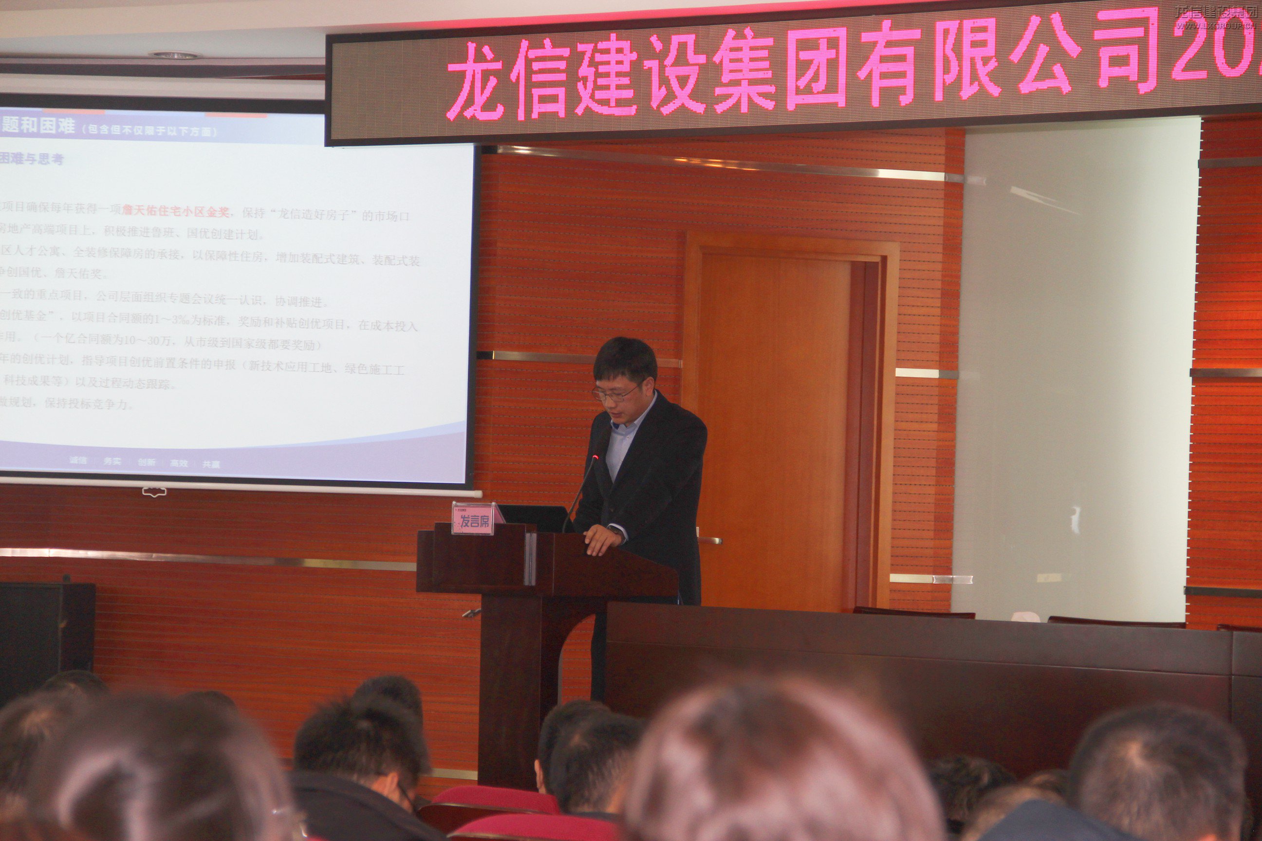 龍信控股公司董事長陳祖新作總結講話。他指出,此次換屆選舉產生了龍信建設集團有限公司新一屆領導經營班子,要明確職責、分工。經營層要轉變理念、主動擔當作為,實實在在做好各項管理。要發揮好新加入的人才的作用,提升效率。公司管理要以標準化為抓手,量化各項工作內容,同時做好成本管理并在各項目部落實落地。安全和質量是企業生存的紅線和底線,要做好安全管理各項工作。面對外部市場環境的不確定性,企業內部要夯實基礎管理。內部考核要根據經營內容做好差異化考核,壓實主體責任。各單位和所有員工都要發揮主觀能動性,為公司創造效益和價值,提升企業品牌影響力。