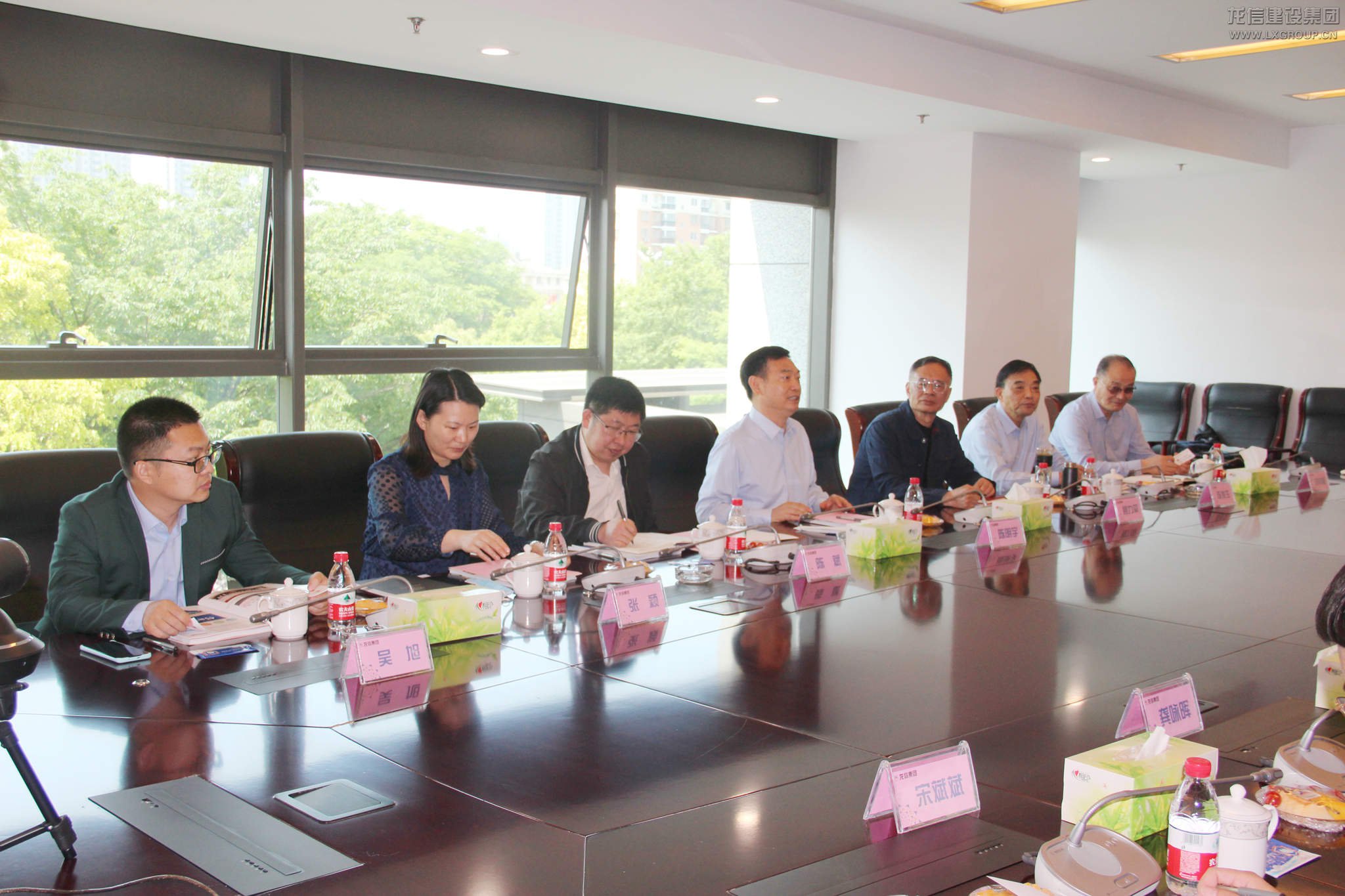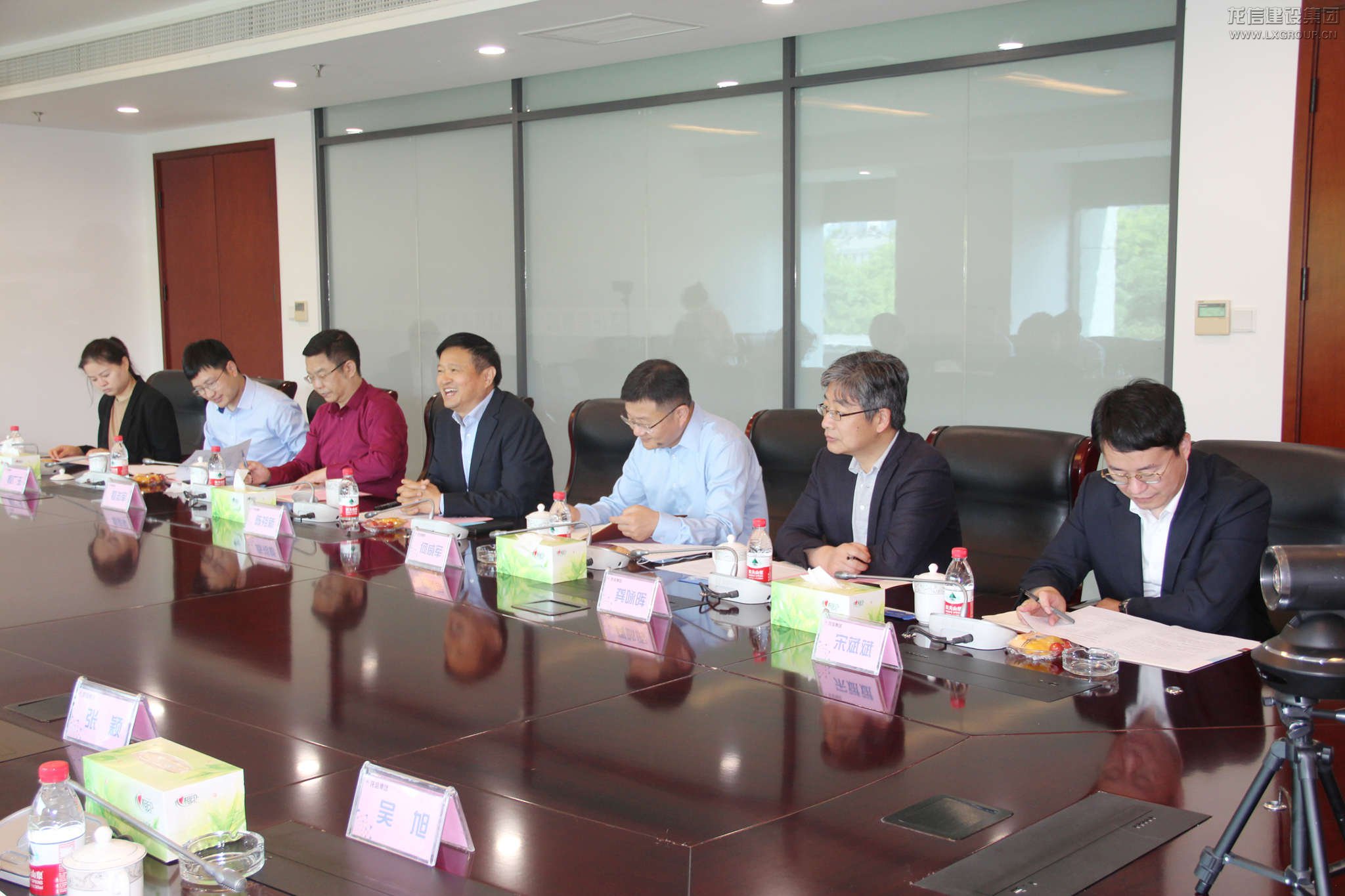 5月7日,南通理工學院董事長陳明宇,副校長顧力平,董事長助理陳斌,科技處長陳俊生,招就處長張穎,建筑工程學院院長劉榮桂,BIM研究院院長吳旭等一行來到龍信集團,就校企合作相關事宜進行交流探討。龍信控股公司董事長陳祖新,建設集團總經理何咸軍,技術中心主任程志軍,產業公司總經理龔詠暉,總工程師殷廣玉,人力資源部經理宋斌斌等共同接待。