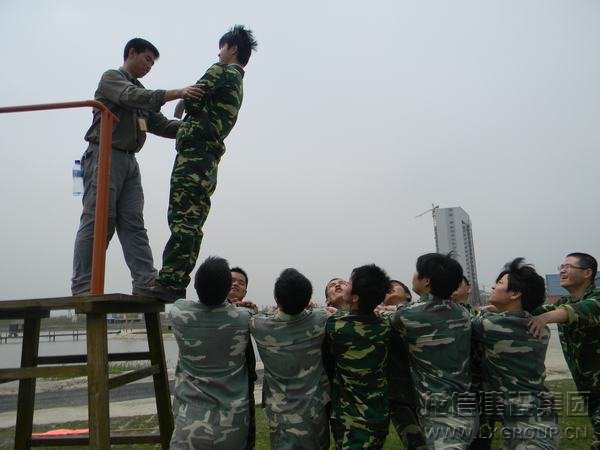 在做“高臺(tái)背摔”拓展訓(xùn)練時(shí),隊(duì)員們協(xié)同配合,親密無(wú)間,增進(jìn)了對(duì)團(tuán)隊(duì)的信任。