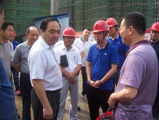 2018年05月19日上午9時株洲市委副書記、市長陽衛國、市住建局長何安國、天元區委書記周建光等領導考察龍信集團株洲湘水灣四期高層安全生產工作。市質安處曾靖處長、鄧少云科長等有關領導陪同。