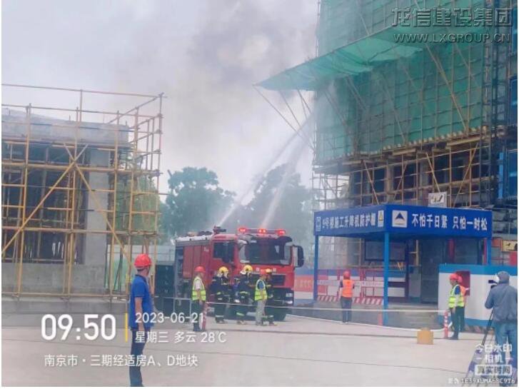為保證演練的實(shí)戰(zhàn)性和可視性,本次演練采取了實(shí)戰(zhàn)演練的方式現(xiàn)場(chǎng)直播,模擬了南京生態(tài)科技島三期經(jīng)濟(jì)適用住房A、D地塊項(xiàng)目施工現(xiàn)場(chǎng)因焊接作業(yè)未使用接火斗,點(diǎn)燃易燃材料發(fā)生火災(zāi)事故。模擬事故發(fā)生后,項(xiàng)目部立即啟動(dòng)應(yīng)急救援預(yù)案,項(xiàng)目部組織應(yīng)急救援組、安全保衛(wèi)組、醫(yī)療救護(hù)組、后勤保障組第一時(shí)間迅速趕到事故現(xiàn)場(chǎng),拉起警戒線、有序疏散人員開展火災(zāi)自救,并使用干粉滅火器及現(xiàn)場(chǎng)消防用水控制火勢(shì)。由于火勢(shì)較大,安全保衛(wèi)組隨即聯(lián)系119,119到達(dá)現(xiàn)場(chǎng)后在安全保衛(wèi)組的引導(dǎo)下進(jìn)行救火,火情及時(shí)得到控制。整個(gè)演練過(guò)程分工明確、有條不紊,應(yīng)急方案執(zhí)行有力、事故處置得當(dāng)。