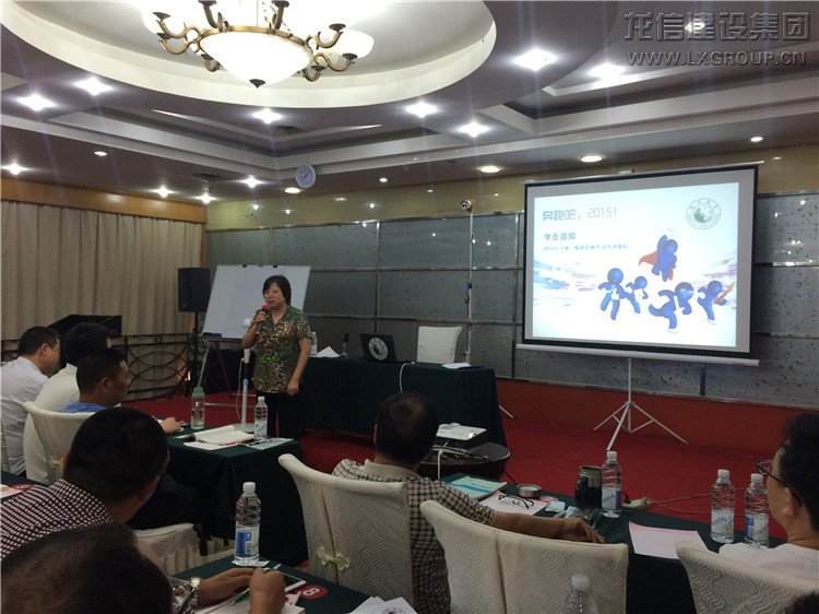 2015年7月21日,龍信集團2015年一級建造師封閉式集訓班在上海嘉定新詞大酒店正式開班,龍信集團黨委副書記兼監事會主席卞勤華、龍信集團董事會秘書兼副總經理何咸軍、集團人力資源部經理黃麗英、筑林教育學院院長田弘及53位來自集團和各個分子公司的優秀學員代表參加了此次開班典禮。